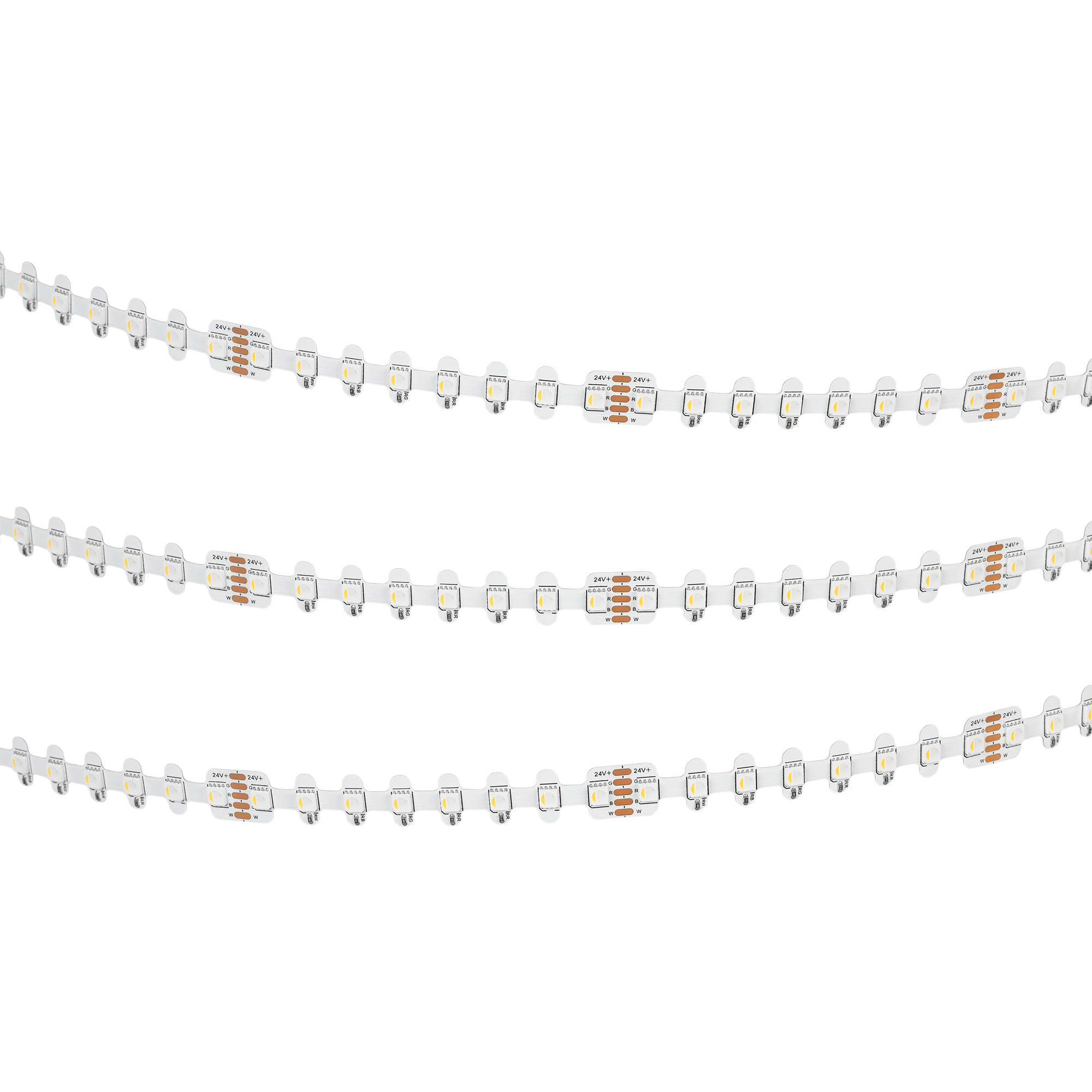 Светодиодная герметичная лента RZ-H96 с фигурной платой в форме волны, легко изгибается на плоскости, IP54 (NANO - защитное нанопокрытие). Светодиоды SMD 4040, 96 шт/м, белая плата шириной 12мм, скотч 3M. Цвет RGB + БЕЛЫЙ 6000 K, индекс цветопередачи CRI>90, угол 120°. Питание 24V, мощность 12 Вт/м (60 Вт на 5 м). Размеры 5000x12x2.2 мм. Мин.отрезок 83.3 мм, 8 светодиодов. Цена за 1 м.