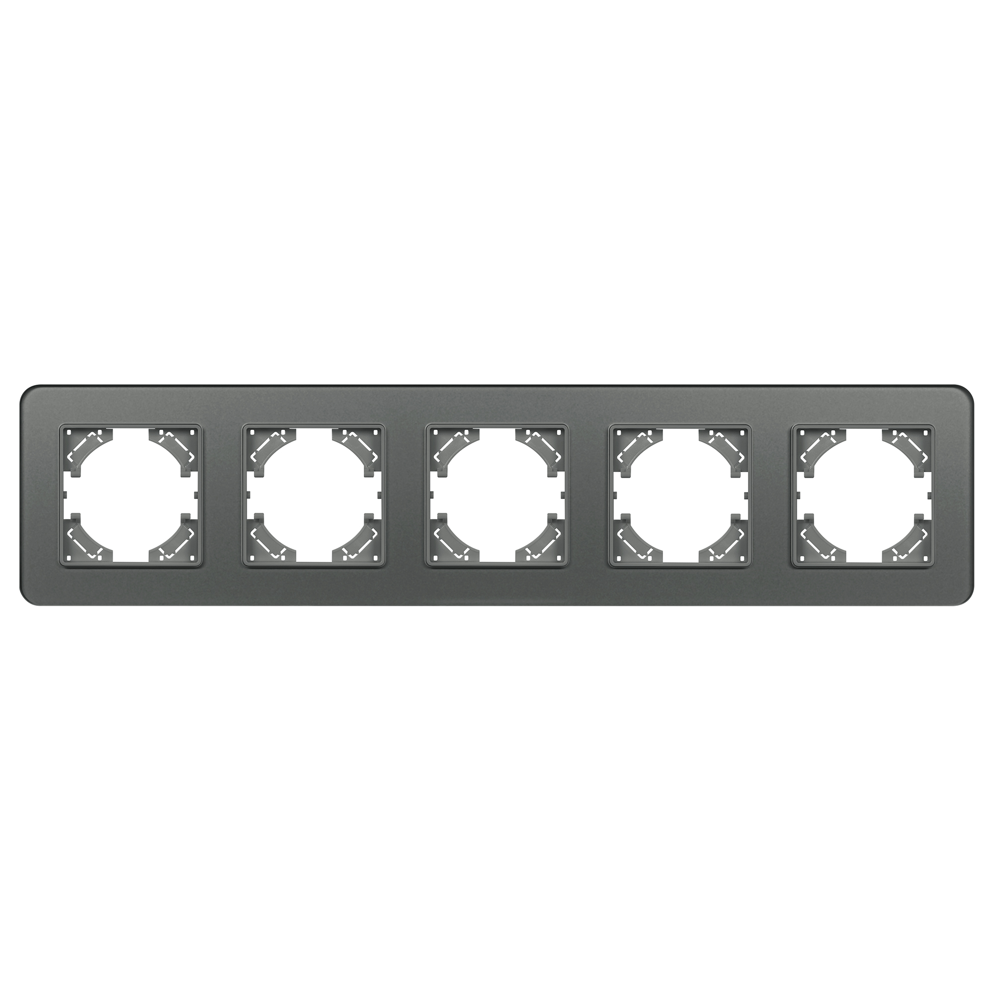 Рамка стеклянная на 5 постов, под встраиваемый механизм. Цвет - серый с Soft-Touch покрытием. Среднего уровня герметичности IP20. Ориентация монтажа - горизонтальная (основным ориентиром служат посадочные выступы для накладки механизма).