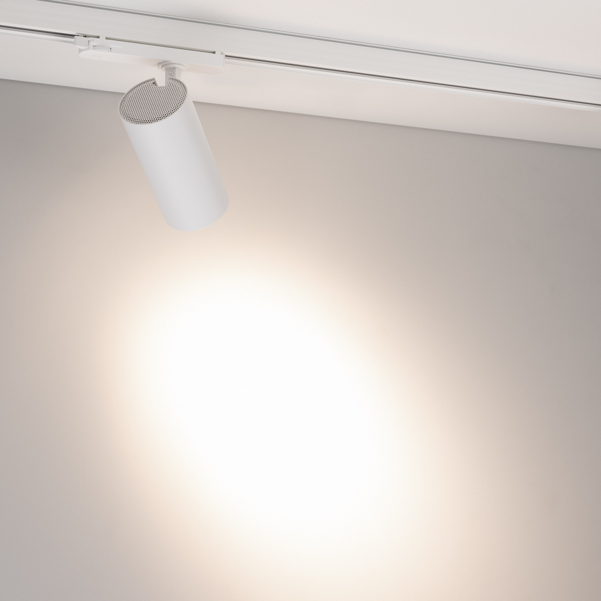 Светильник для треков/шин 4 провода. Мощность 20 Вт, св. поток без решетки honeycomb 2000 лм, 100 лм/Вт, с решеткой honeycomb 1320 лм, 66 лм/Вт, дневной 4000 K, CRI>90, угол 24°, напряжение питания 230 В. Белый круглый корпус из алюминия, материал линзы PMMA, степень защиты IP20. Антибликовая решетка honeycomb в комплекте. Размер: диаметр 74 мм, длина световой части 154 мм. Монтаж на трек 3-фазный. Драйвер встроенный 24-42 В, 500мА., пульсация <5%