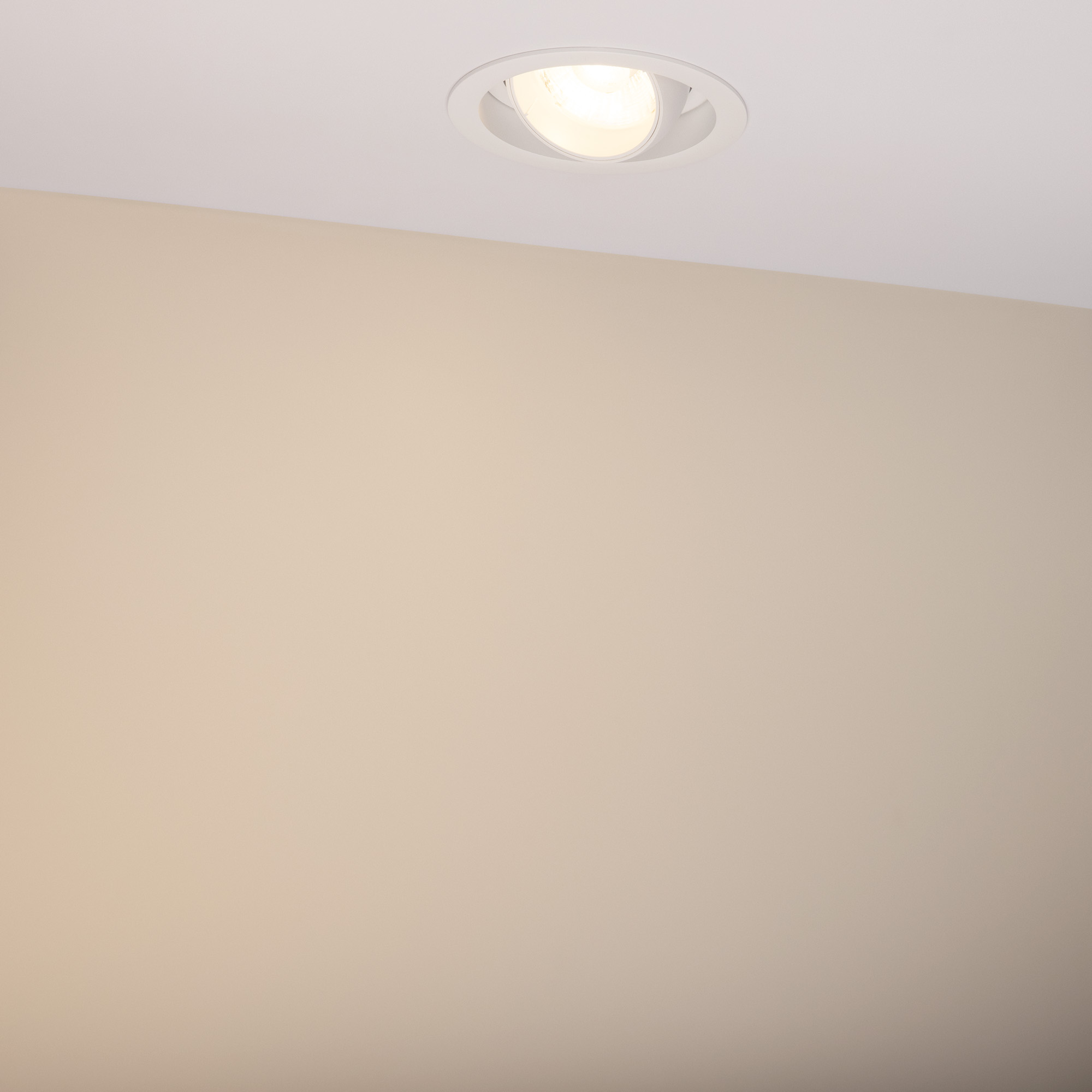 Встраиваемый карданный поворотный светильник с высоким индексом цветопередачи CRI>92 предназначен для создания качественного освещения. За основу поворотного механизма светильника взят принцип кардана – подвижное соединение двух колец, вложенных одно в другое. Световой модуль вращается вокруг своей оси на 360 градусов и отклоняется от горизонта на 30 градусов, что позволяет с лёгкостью регулировать направление пучка света и его концентрацию на определенной зоне. Особая конфигурация корпуса из алюминия оригинально смотрится в интерьере и позволяет эффективно отводить тепло. Светильник с углом рассеивания 50 градусов отлично подходит как для локальной акцентной подсветки витрин, прилавков магазинов, бутиков и стендов выставочных залов, так и для общего освещения. Легко устанавливается с помощью пружин в монтажное отверстие потолка. В комплекте поставляется драйвер, что позволяет безопасно и быстро подключать светильник напрямую к сети переменного тока 230 В.