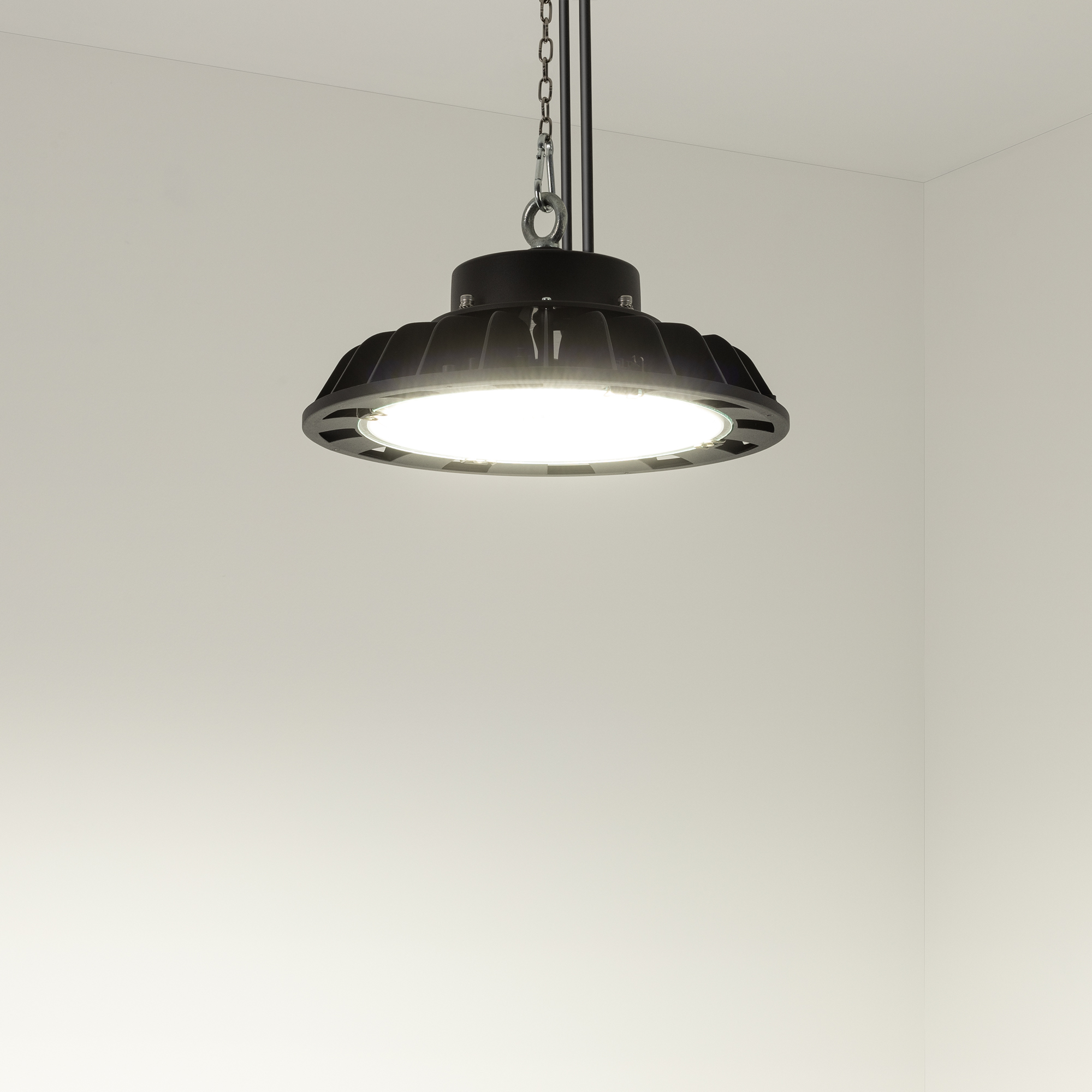 Светильник SP-DRAGON-PREMIUM-R295-120W Day5000 (GR, 60 deg, 230V) мощностью 120 Вт для освещения складских, производственных, промышленных, торговых, спортивных и других помещений с высокими потолками. Дневной белый цвет свечения (5000 K), световой поток 19200 лм и угол излучения 60° для организации общего освещения. Светильник может стать эффективной заменой светильников с лампами МГЛ, ДРЛ, ДНаТ. Высокая степень пылевлагозащиты IP65 допускает использование в помещениях с перепадами температуры и влажности. Светильник имеет два способа крепления: подвесной и установка на фиксирующей скобе. Рым-болт поставляется в комплекте.